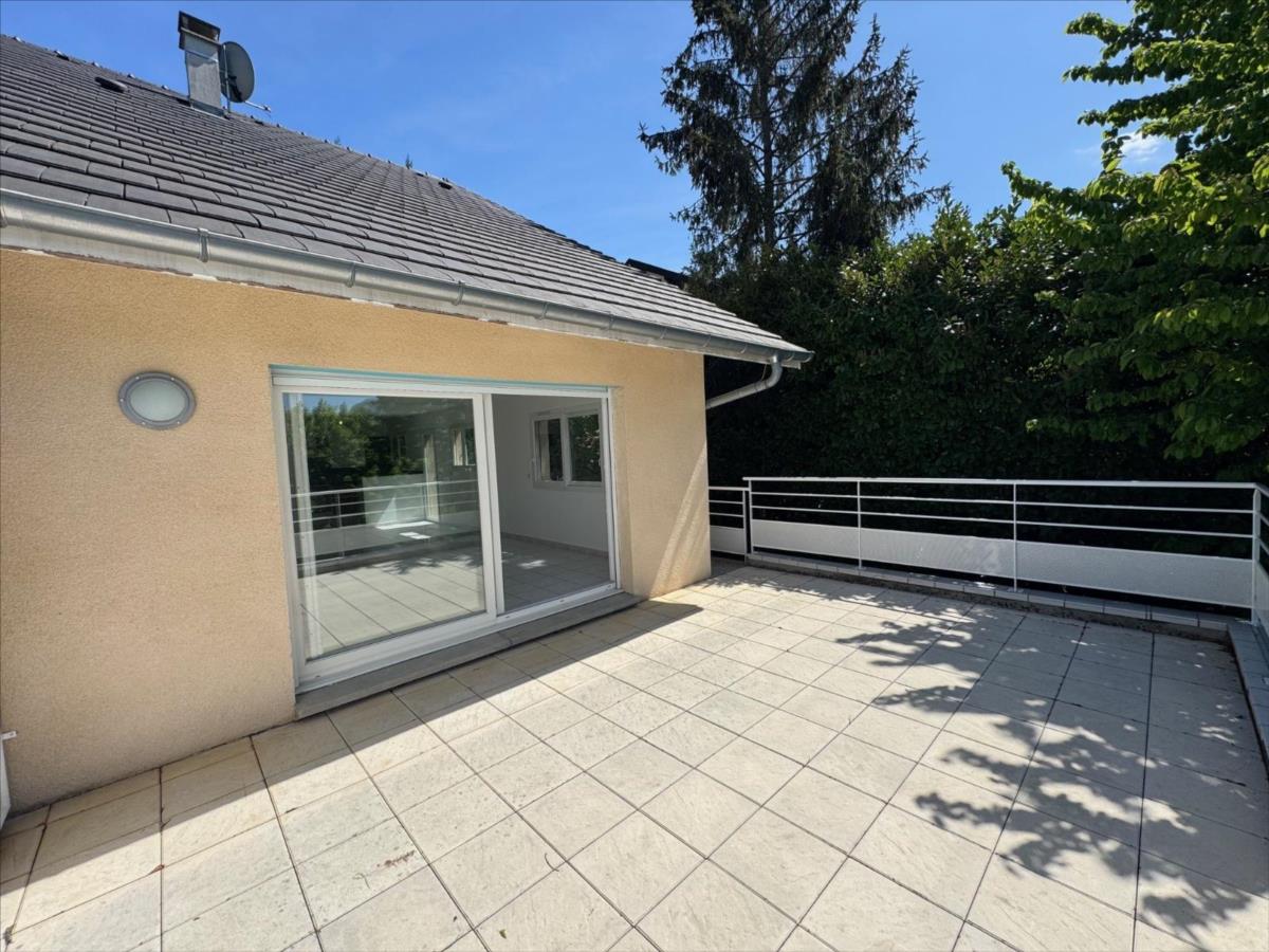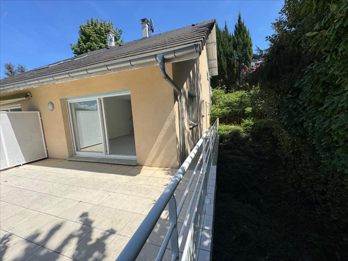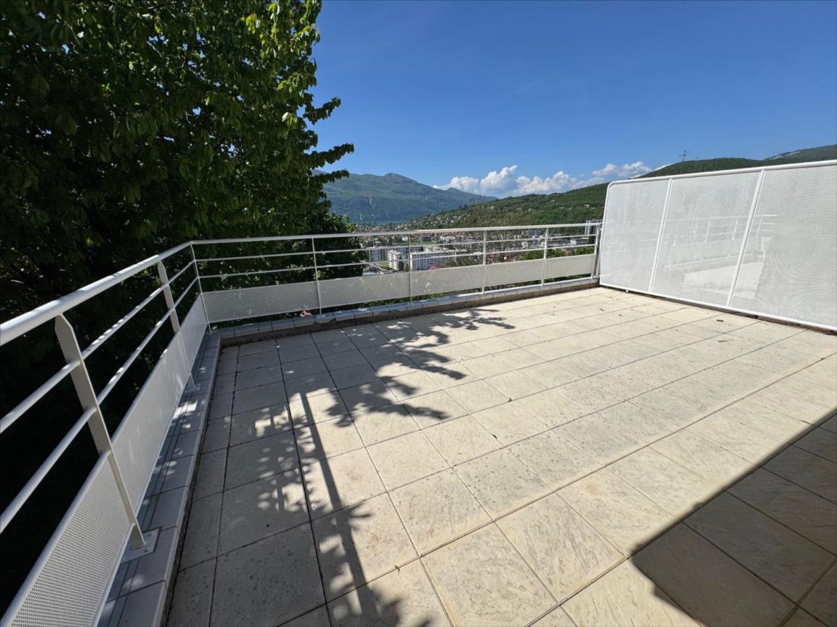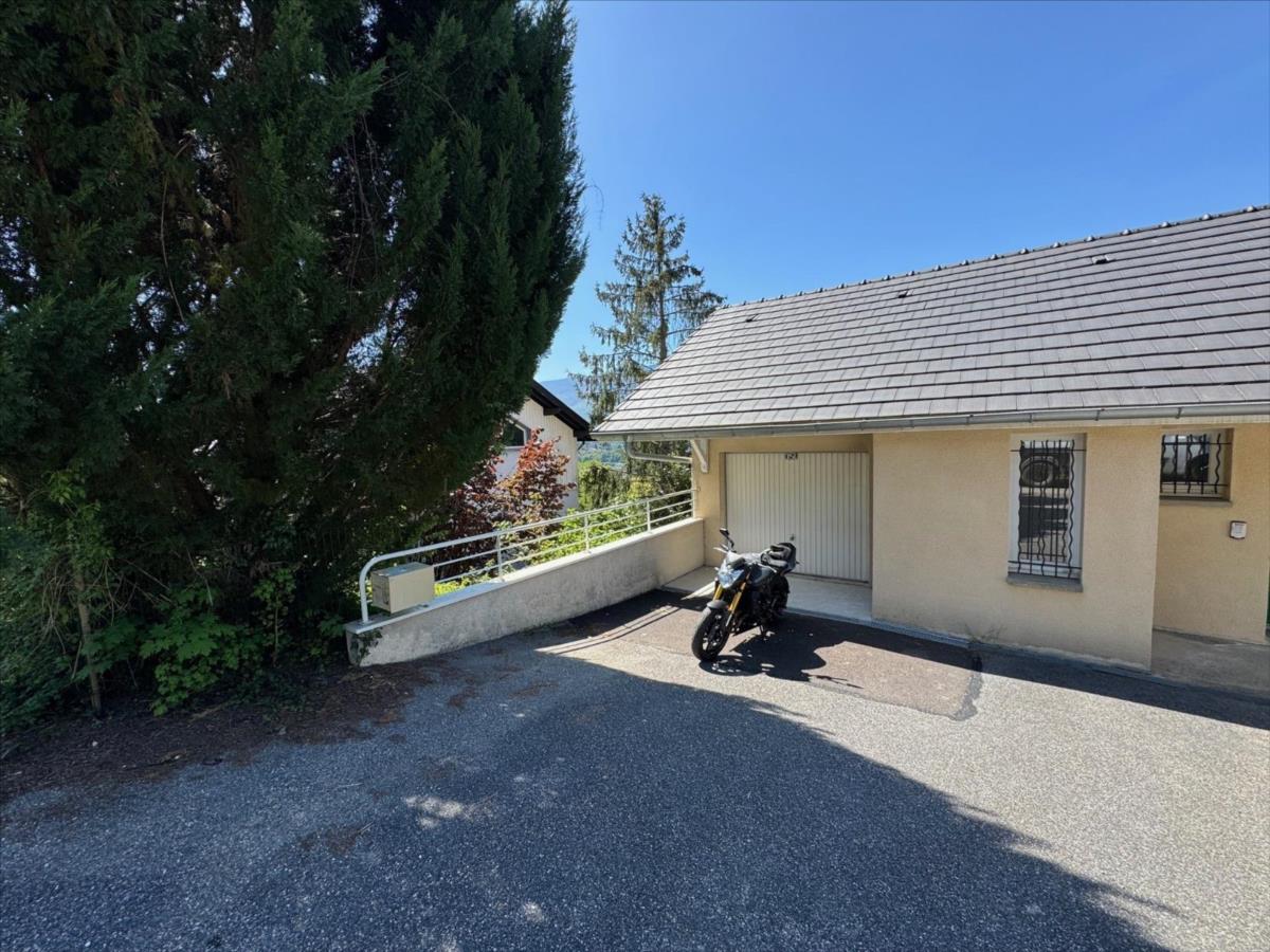 Sur les premières hauteurs d’AIX LES BAINS, avec une vue panoramique sur la ville, le lac du Bourget et la Dent du chat, maison mitoyenne de 2006 édifiée sur 3 niveaux, avec un DPE C ( chauffage neuf), en bon état général. Actuellement agencée en 3 chambres, (possibilité d’une 4ème), surface habitable actuelle totale de 105 m². 44 m² de pièce de vie (cuisine ouverte sur le salon – séjour). Grande terrasse de 26 m² panoramique et ensoleillée au niveau des pièces de vie, et un balcon de 7.5 m² pour les chambres. Grand garage de 45 m² + parking extérieur. Secteur résidentiel et pavillonnaire, au calme. A proximité des accès routiers ( sans les nuisances), des commerces, des écoles, et de la ville.