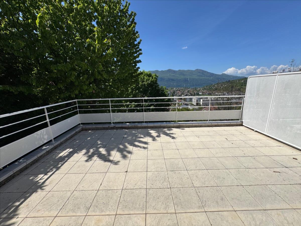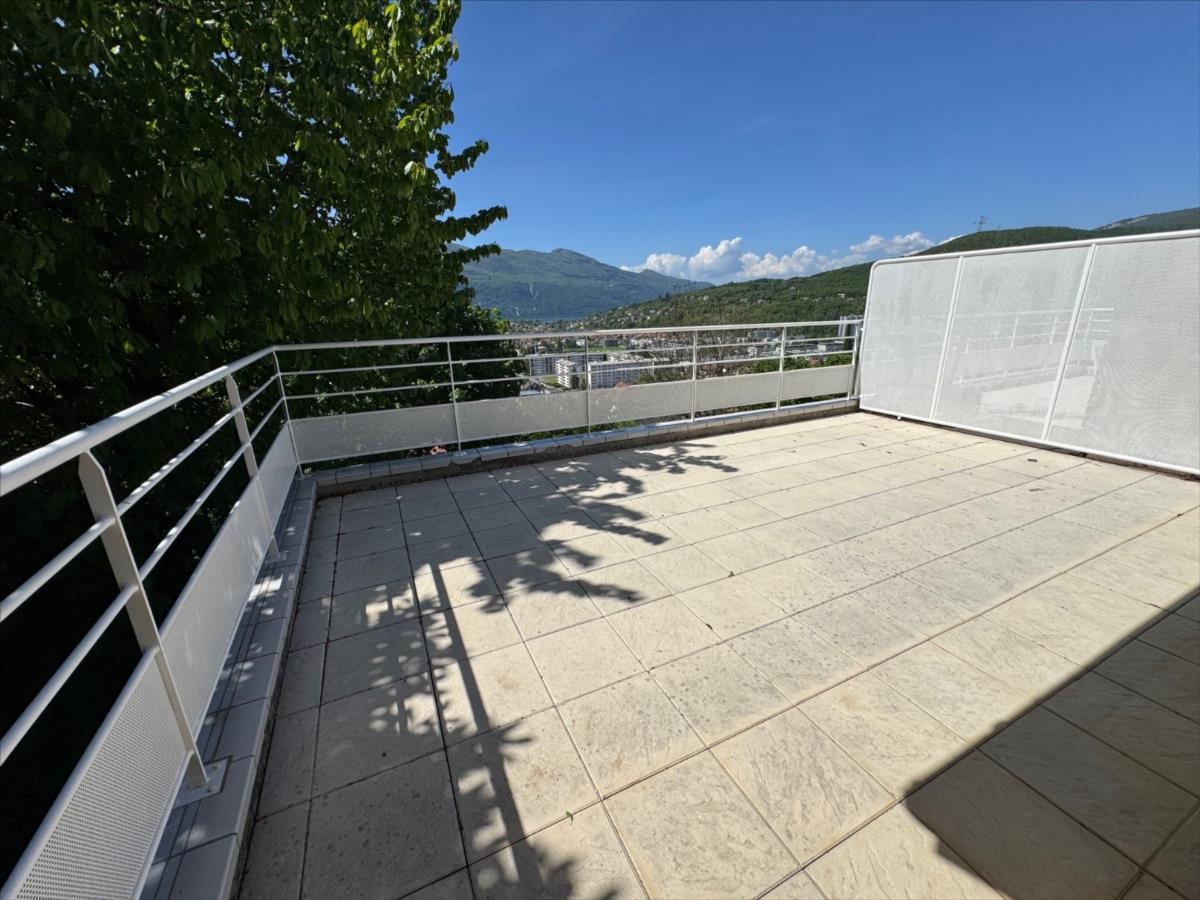 Sur les premières hauteurs d’AIX LES BAINS,  avec une vue panoramique sur la ville,  le lac du Bourget et la Dent du chat,  maison mitoyenne de 2006 édifiée sur 3 niveaux,  avec un DPE C ( chauffage neuf),  en bon état général.  Actuellement agencée en 3 chambres,  (possibilité d’une 4ème),  surface habitable actuelle totale de 105 m². 44 m² de pièce de vie (cuisine ouverte sur le salon – séjour).  Grande terrasse de 26 m² panoramique et ensoleillée au niveau des pièces de vie,  et un balcon de 7.5 m² pour les chambres. Grand garage de 45 m² + parking extérieur. Secteur résidentiel et pavillonnaire, au calme. A proximité des accès routiers ( sans les nuisances), des commerces, des écoles, et de la ville.